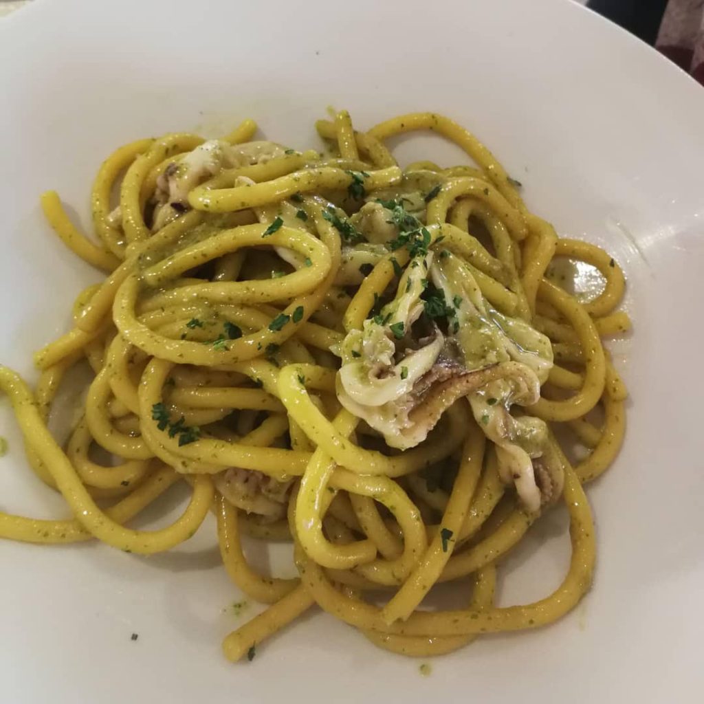 Questi due primi piatti non sono assolutamente tradizionali, ma solo un modo per esaltare quanto di buono possa arrivare dal mare che circonda Grado. I bigoli presentano un pesto piuttosto leggero, il quale dona una piacevole nota di basilico che fa molto estate (era Gennaio), i calamaretti sapevano effettivamente di mare, ma se devo essere sincero erano un po’ troppo cotti, ed in generale ho trovato il piatto lievemente blando.