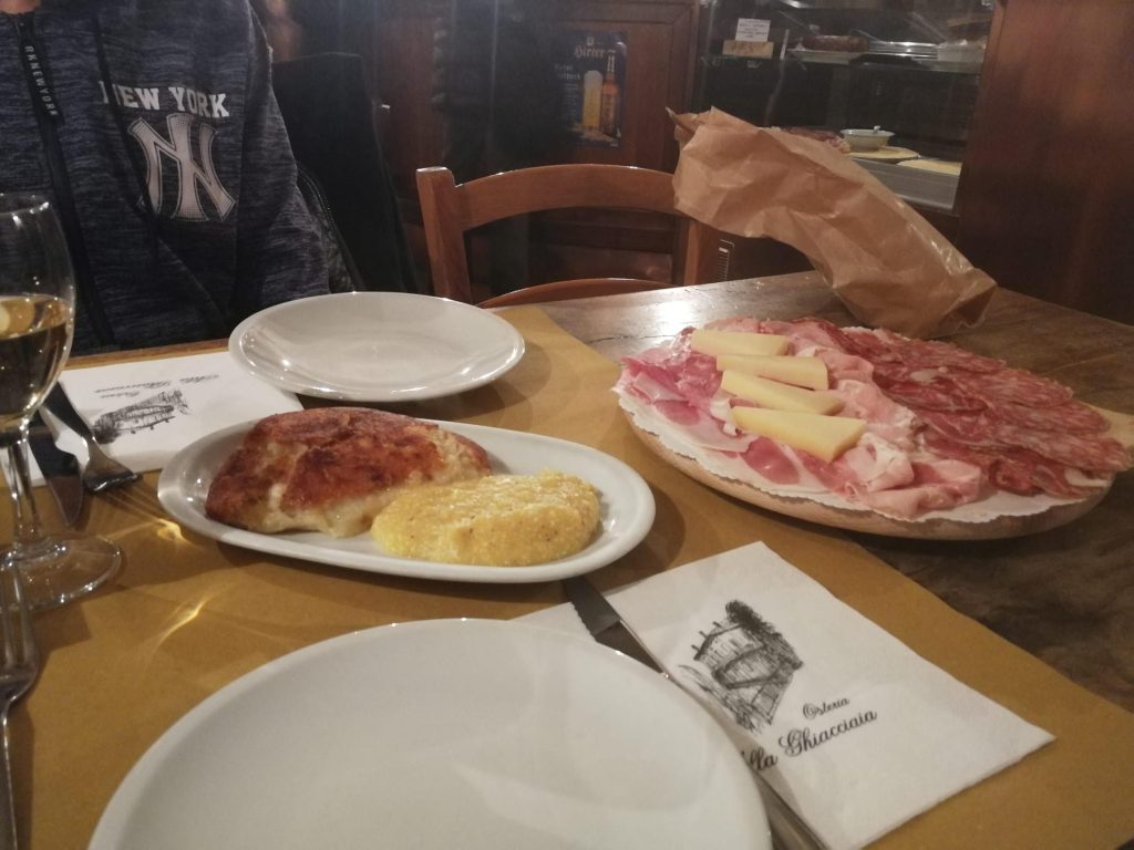 Per quanto riguarda frico e polenta, il cibo contadino e povero per eccellenza, realizzato con ingredienti di recupero, posso solo dire che si presenta esattamente come te lo aspetteresti. Si tratta di un impasto formato da patate, formaggio e cipolle, niente di più. La sua sostanziosità è innegabile, ma si tratta di un prodotto dal sapore bilanciato e ricco. Assaporandolo si sente davvero la tradizione che lo compone, si percepisce l’importanza di una ricetta che veniva tramandata di generazione in generazione. La polenta è più leggera in confronto, utile per fare una pausa grazie al suo sapore intenso di grano, senza mezze misure, proprio come lo avrebbero fatto in campagna.
